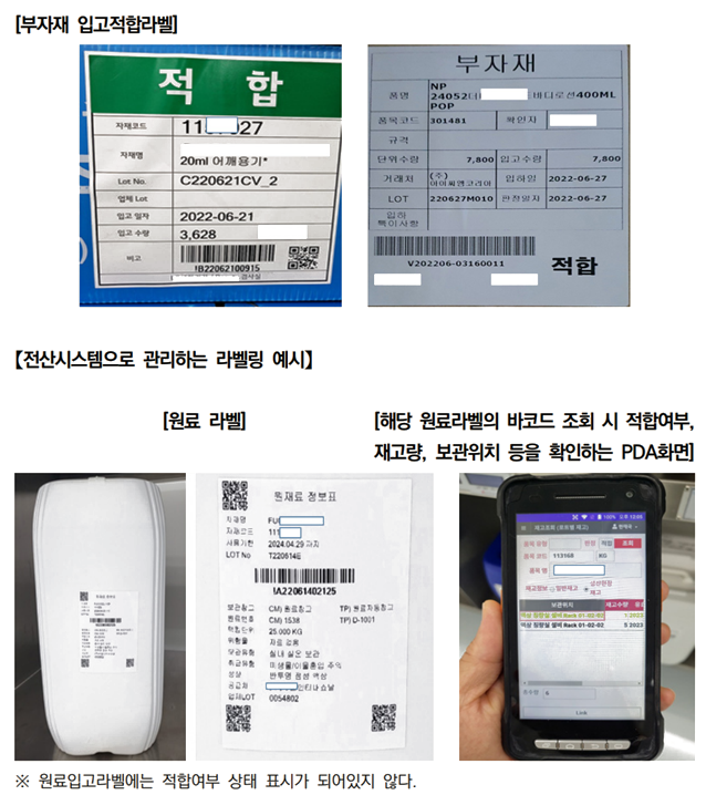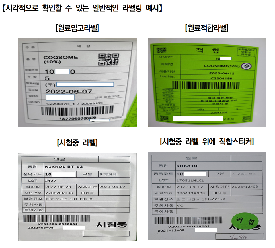 3) 제품, 원료 및 포장재 등의 혼동으로 발생 가능한 위험을