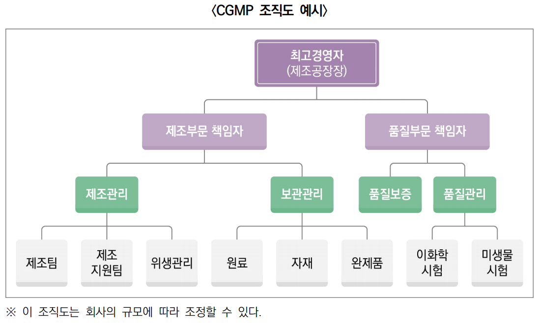 나. 조직구조는 조직과 직원의 업무가 원활히 이해될 수 있도록 규정되어야 하며, 회사의 규모와 제품의 다양성에 맞추어 적절하여야 한다.