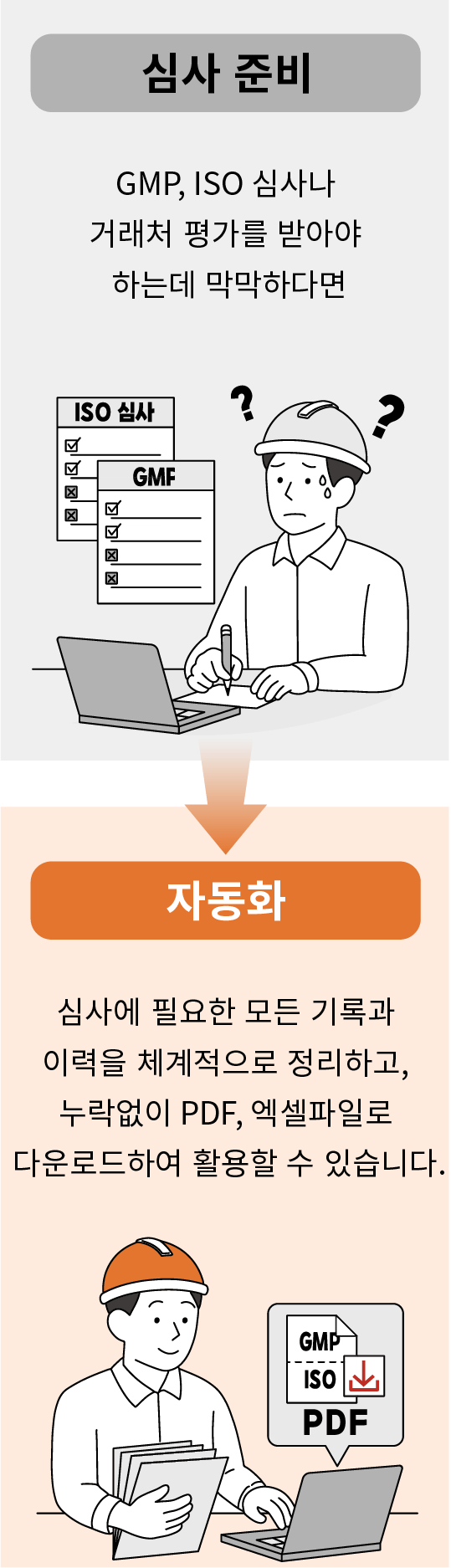 ERP에 원부자재 사용량을 기록하고 제조지시 및 기록서, 시험일지, 시험성적서 등 GMP, cGMP, HACCP, ISO 인증 유지에 필요한 기록들을 별도로 수기 작성하는 등 2중으로 일하고 있지 않나요?